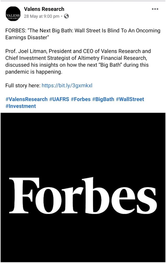 To give you an idea, here’s an example of an article that President and CEO of Valens Research, Prof. Joel Litman, wrote and published on Forbes.com on a very intriguing event that is bound to happen because of the impact of COVID-19.