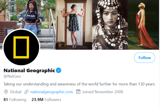 National Geographic’s Twitter account has 23.9 million followers and offers bite-sized versions of their content. This includes a mix of short informative video snippets, gifs, and images you can instantly retweet!