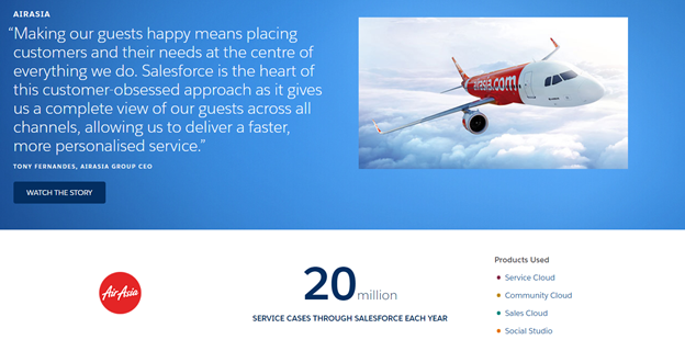 One of the brands that have utilized client testimonials effectively is Salesforce, a cloud-based software company in the United States.